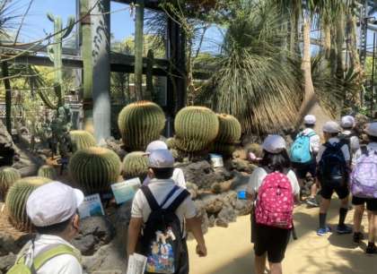 2年生が、遠足で鶴見緑地公園に行きました。咲くやこの花館では、サボテンやバナナ等の植物を観察しました。
