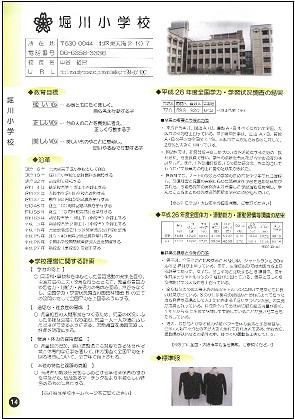 「平成28年度 新入学生向け 学校案内」 堀川小学校のページを紹介します