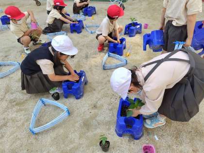 野菜の苗を植えました。どんなふうに育っていくのか、これからしっかりと観察します。