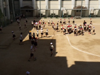 本校では、運動場が狭いため、昼休みは低学年と高学年に分けて遊びと清掃を交代して行っています。