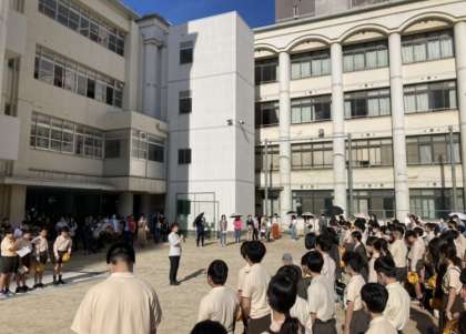 修学旅行の出発式を運動場で行い、三重県に向けて無事にバスで出発しました。