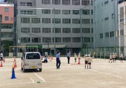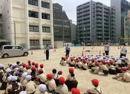 天満警察に来ていただき、1年生が道路の安全な歩き方を学習しました。