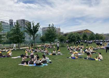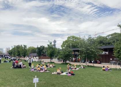 お昼にはてんしばに行き、弁当を食べました。芝生で食べる弁当は格別でした。雨の心配もありましたが、計画通りに社会見学を実施することができました。