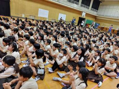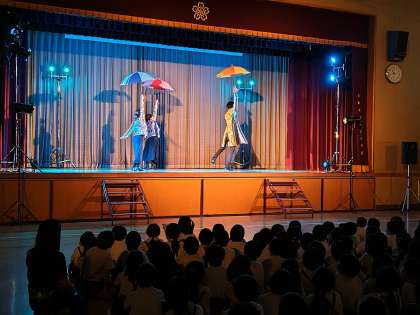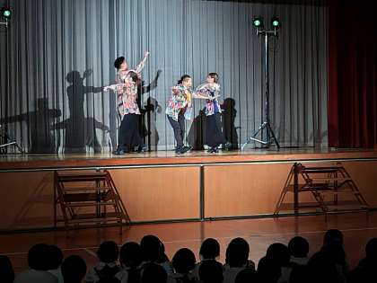 1・2・3・4年生が、体育館でパントマイムを鑑賞しました。すばらしいパフォーマンスに歓声が上がりました。