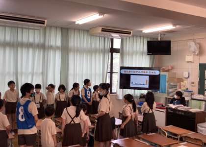 各教室で、班の中で出席番号や住んでいる階の順番に並ぶゲームをしました。短い時間でしたが、異学年で交流をすることができました。