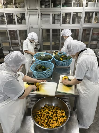 堀川小学校では、約30玉のかぼちゃを使っています。