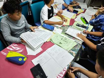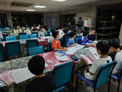一日を振り返り、明日に向けての打合せです。しっかりメモをとり、部屋の皆に伝えます。
