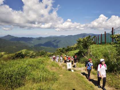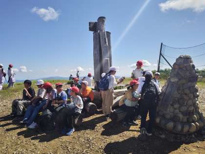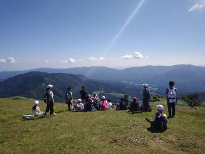 みんなよくがんばりました。登頂成功です。心地よい風が疲れを癒してくれます。
