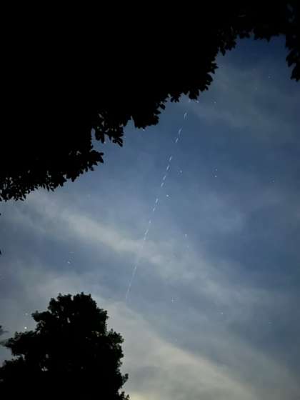スターリンク衛星の実写真です。初めは謎の飛行物体かと思われましたが、スターリンク衛星とわかりました。