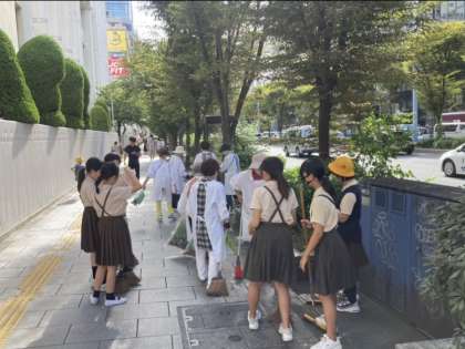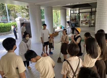 6年生が地域の方と一緒に、ふれあい清掃をしました。美しい学校のために、子どもたちと地域の方がともに活動をしています。
