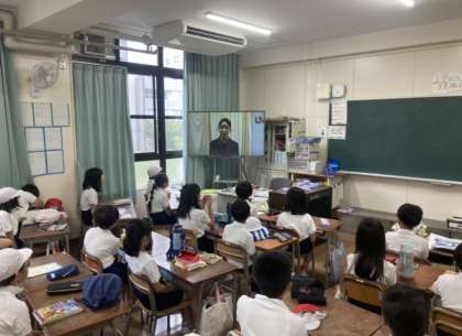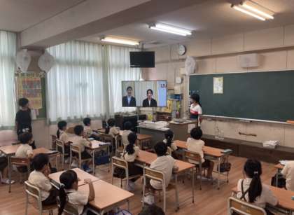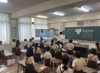 テレビを使って全校朝会を行いました。9月1日に堀川小学校に着任した先生や教育実習に来られた先生の紹介がありました。