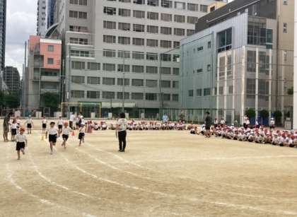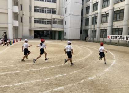 スポーツフェスティバルで行う個人走のコースや動きを確認しました。暑さに負けず、一生懸命に走りました。