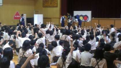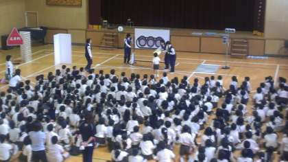 2、3時間目、講堂で全校児童に交通安全指導が行われました。警察の方が歩行の仕方や自転車に乗る時の約束など丁寧に指導してくださいました。