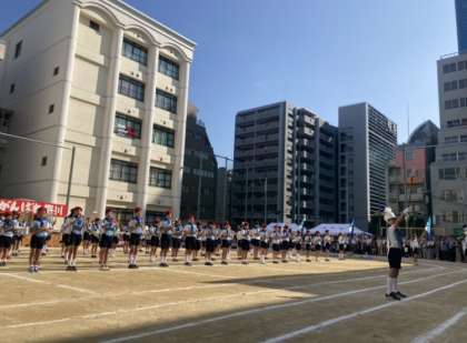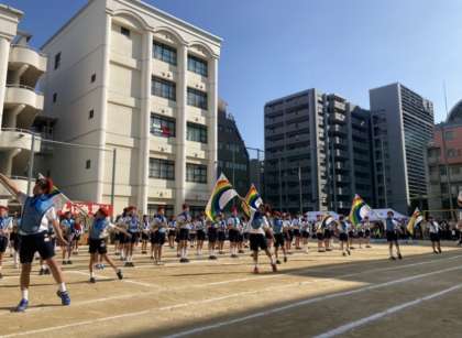 堀川小学校の伝統を受け継ぐ6年生のマーチングからスポーツフェスティバルがスタートしました。