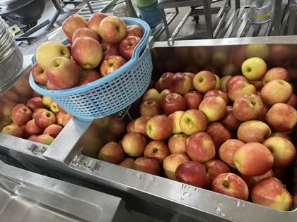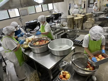 堀川小学校には、青森県から、約260個のりんごが届きました。