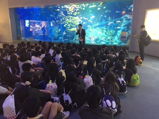 予定通り11時15分に鳥羽水族館に到着、記念写真撮影後に館内へ、メインホールで注意事項を聞いて班活動がスタートしました。早速、お土産を見る班や食事する班など、楽しい活動が始まりました。
