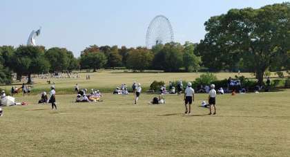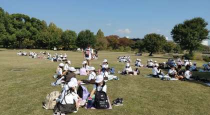 3年生が遠足で万博公園に行きました。とてもよい天気に恵まれ、子どもたちは美味しいお弁当を食べ、緑に囲まれてのびのびと過ごしています。