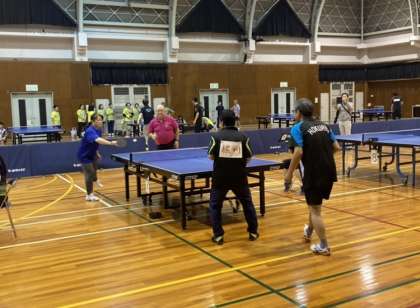 北スポーツセンターで、北区PTA卓球大会がありました。堀川・北稜合同チームで、チームやペアと力を合わせて、スマッシュにレシーブに全力でプレーしました。