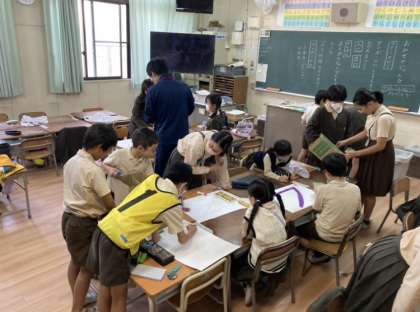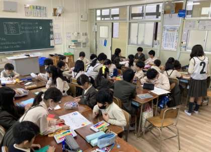 異学年のグループに分かれて、オータムフェスティバルの店の準備を行いました。高学年が低学年に、やさしく声をかける場面がたくさん見られました。