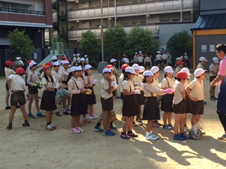 「地域をきれいに!」を合言葉に「大阪マラソンクリーンアップ作戦」に参加する形で、学校の周辺や校区内の公園の清掃を全学年の子どもたちとPTAで行いました。