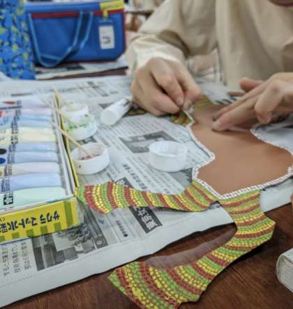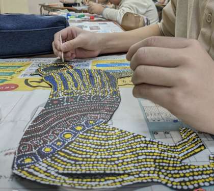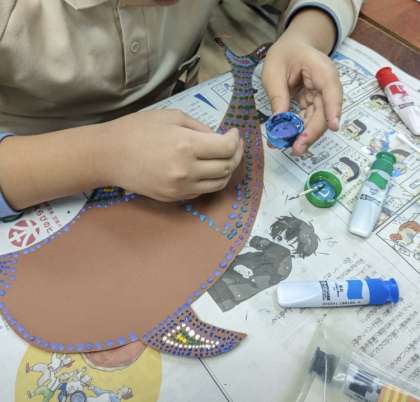 毎時間少しずつ丁寧にぽつぽつぽつ。爪楊枝や綿棒でこつこつとドット(点)をつないでいます。