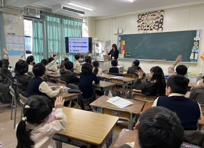 「早寝、早起き、朝ごはん、朝うんち」についてお話を聞きました。食べ物の栄養素を吸収する腸の長さに驚き、食べ物ビンゴを楽しんで学習しました。