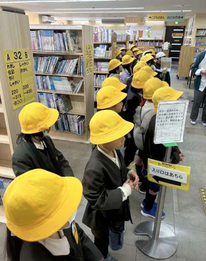 生活科の学習で、北図書館へ見学に行きました。図書館で働く人の仕事や図書館についてたくさん教えていただきました。北図書館には、約72000冊の本があるそうです。図書館にある一番分厚い本は、3048ページもあるそうです。新しい発見がたくさんあった図書館見学でした。