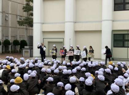 全校朝会で、読書感想画、平和ポスターの表彰を行いました。3月に入り、卒業式や修了式まで残りわずかになってきています。一日一日を大事に過ごしましょう。