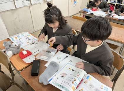 理科では、「ものと重さ」の学習をしています。同じ体積でも物の種類がちがうと、重さにちがいがあるのか実験をして調べました。