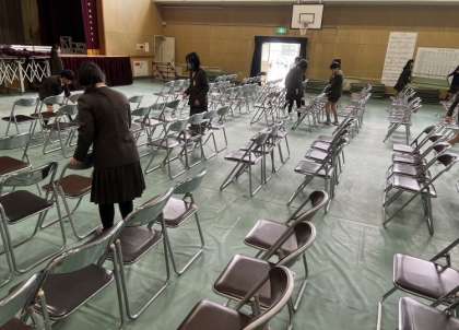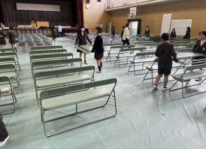 卒業式会場準備