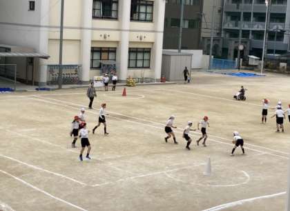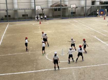 チームにわかれて、ハンドボールの練習をしたり、ゲームをしたりしました。