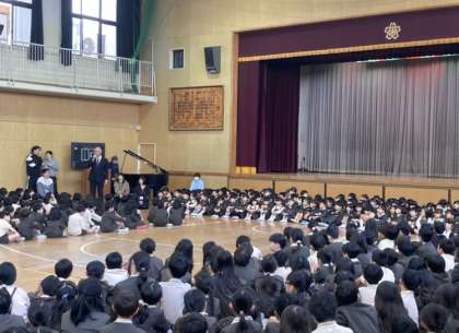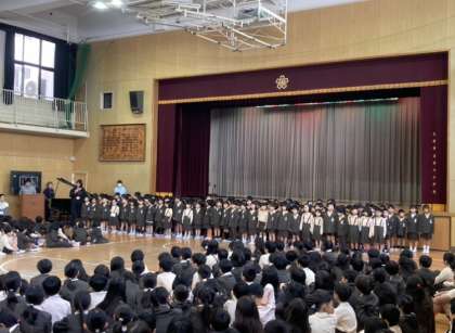講堂で新1年生と在校生の対面式を行いました。わからないことがあっても、2年生以上のみなさんが、やさしく教えてくれます。みんなで楽しい堀川小学校を作りましょう。