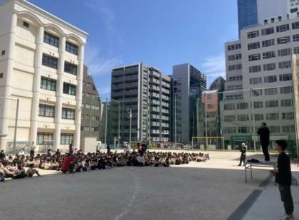 給食室で火事がおきたことを想定して、避難訓練を行いました。