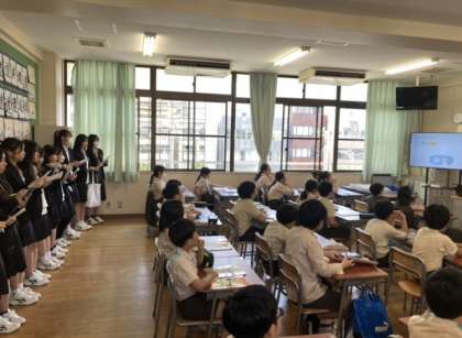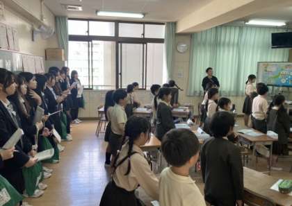 大阪府立桜和高等学校の3年生(国際文化コース)が来て、4・5年生の外国語・外国語活動の授業を見学しました。今後も校区内にある桜和高校と様々な面で連携を図っていきます。