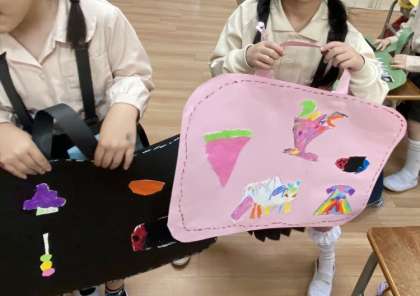 好きなものをいっぱいつめこんだかばんを作りました。お気に入りのかばんを手に下げて、みんなうれしそうです。