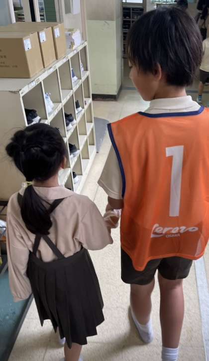 今年初めてのたてわり班集会がありました。6年生はリーダーとして、1年生を迎えに行ったり、班をまとめて、自己紹介や班のめあて決めたり、中心になって活躍していました。