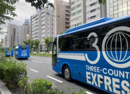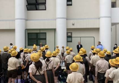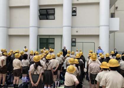 天候に恵まれ、今日から志摩、鳥羽への修学旅行です。運動場で出発式を行い、さきほどバスで出発しました。