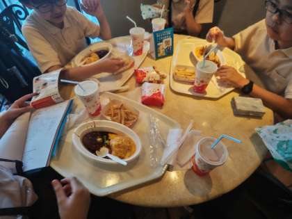 グループでまずは昼食です。ミールクーポンでレストランを選びます。