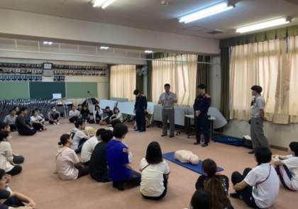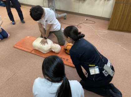 消防署の方に来ていただき、救急救命講習を行いました。子どもたちの安全確保のために、日々研修を重ねています。