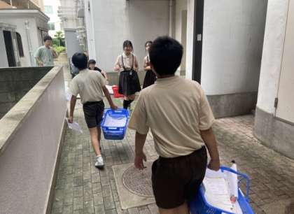 環境委員会の子どもたちが、教室で集まった古紙を回収しました。