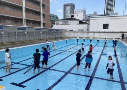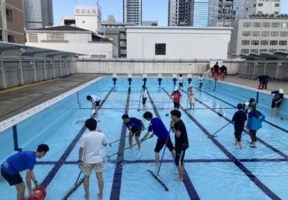 明日からはじまる水泳に向けて、放課後に教職員でプールの清掃や準備を行いました。