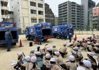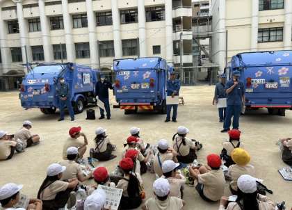 普段見ることができないパッカー車の中を見せていただきました。ごみの分別や収集についての出前授業でも詳しく教えていただきました。