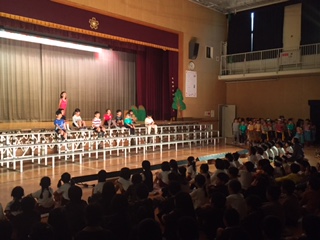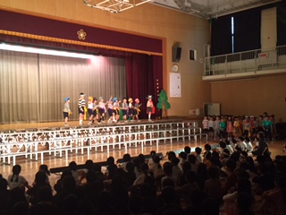 ダンスや歌、それぞれのせりふに合った動きを工夫して練習してきました。そして何よりみんなで歌うテーマ曲がとってもお気に入りです。元気な一年生の演技をぜひお楽しみください。