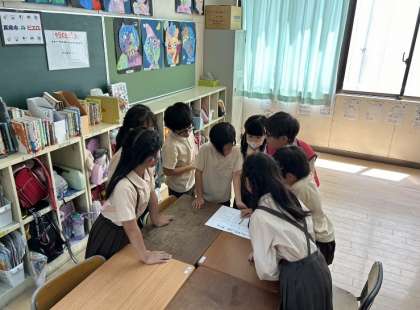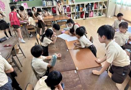 6月26日にあるサマーフェスティバルに向けてたてわり班ごとにめあてやお店をまわる順番を決めました。子どもたちは、当日のお店番やお店まわりをとても楽しみにしています。