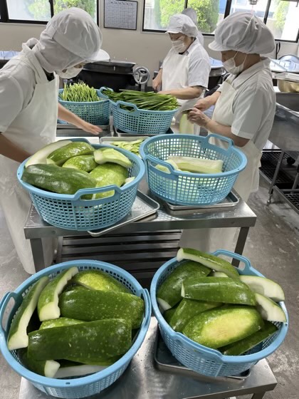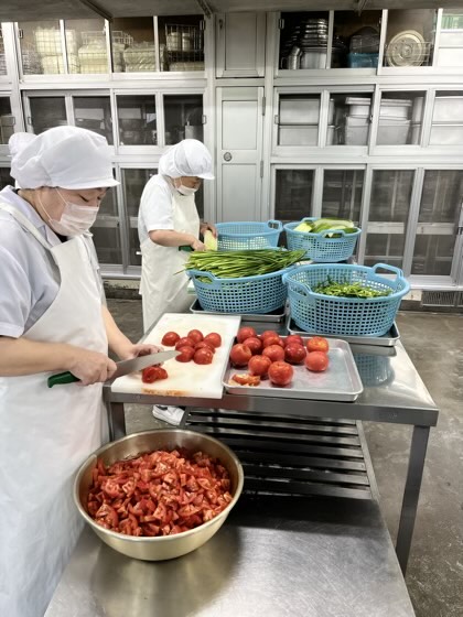 給食で夏野菜をたくさん食べて体力をつけることができるように工夫しました。