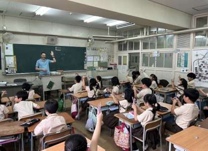 2年生の教室にもC-NETの先生が来て、英語を楽しく学習しました。
