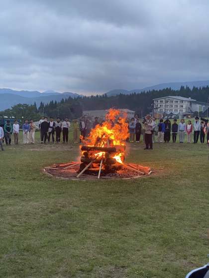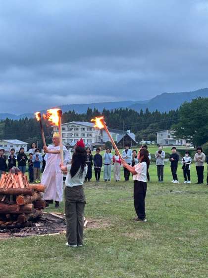 火の神と火の子の入場です。いよいよお楽しみイベントの始まりです。