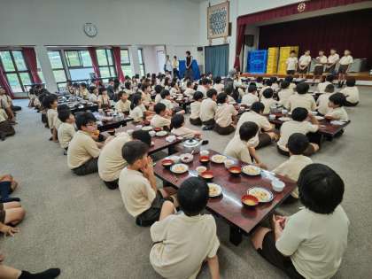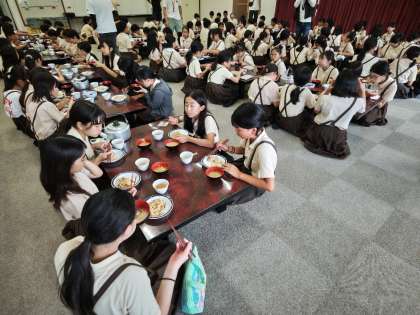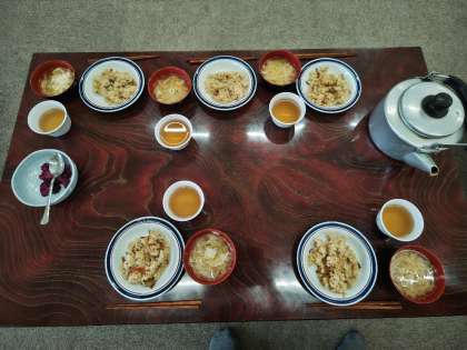 宿舎での最後の食事となりました。五目ごはんと豚汁です。