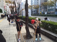 4年生がふれあい清掃に参加しました。朝、いつもより早く登校して堀川地域女性会の皆さんと一緒に清掃活動を行いました。