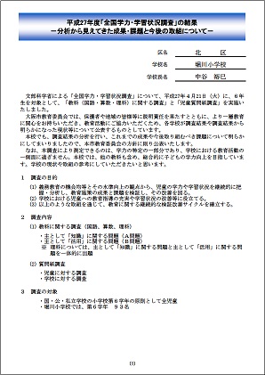 平成27年度「全国学力・学習状況調査 堀川小学校」の結果を掲載しました